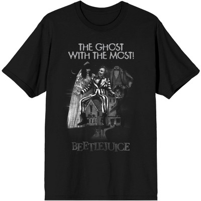 It's Showtime! Now you can join Adam and Barbara in the netherworld with this officially licensed Beetlejuice Distressed Logo Men's Graphic T-Shirt! This unique and retro design features the name "Beetlejuice" printed and repeated three times in distressed white lettering down the front. Celebrate one of the best after-life-themed comedy horror films and don't wait in the house for the next one hundred and twenty-five years to get this apparel!