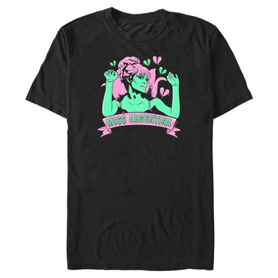 Celebrate Valentine’s Day, in the creepiest, funniest way possible, after all, who says love can't be a little offbeat with Beetlejuice apparel? This men's Miss Argentina Hearts t-shirt features Miss Argentina, colored in pastel pink and green along with the text: "Miss Argentina". Whether you're planning a romantic night out with your lovebug or just celebrating your weird and wonderful self, these Beetlejuice styles are here to add some ghostly charm to your wardrobe. Shop now and make this romantic season totally outrageous!