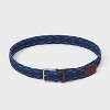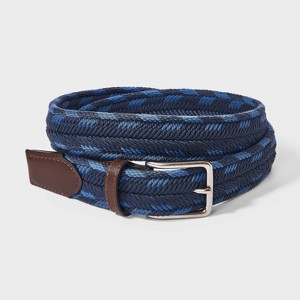 Elevate your outfit with the textured charm of this Belt from Goodfellow & Co™. This stylish belt in blue features a woven construction with a braided design that adds both style and adjustability, letting you fasten the buckle anywhere along the weave for a perfect fit. It's finished with a rectangular metal buckle closure, along with a faux-leather belt loop and end tip that give it a polished touch.