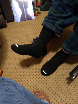 [This review was collected as part of a promotion.] My son in law loved his slipper socks! He said his feet are warm now!