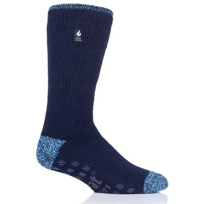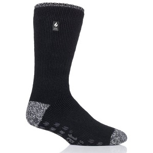 All the same warmth as the ORIGINAL™ Heat Holders® Crew sock, but in an Extra Large size and slipper style. Non-slip grippers on the bottom provide better traction on indoor wood or tiled surfaces.Keep feet warm on the coldest of days and pull on this pair of solid color, slipper style, extra large, crew length Heat Holders® for men, the warmest thermal sock.Thick, chunky and with a massive tog rating of 2.34, Heat Holders® are made from a specially developed heavy bulk yarn which has extreme thermal qualities. With long pile cushioning, these thermal socks will help keep feet fully comfortable and supported.The inside of each sock has been intensively brushed such that they not only feel sensationally soft but also trap warm air close to the skin keeping your feet warmer for longer.Heat Holders® are non-binding. They are diabetic friendly and provide relief for cold feet due to circulation problems.