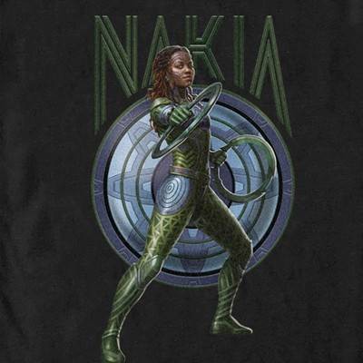 • Strut your stuff with this stylish new everyday Men's T-Shirt that is perfect for every occasion! Featuring Nakia standing tall with her name above and a shield in the background.