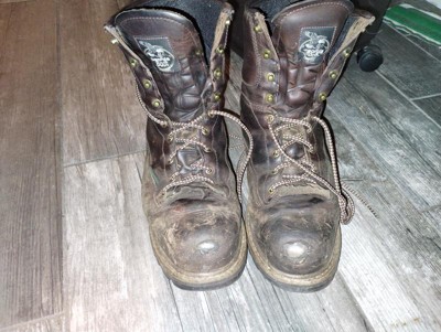 You need a tough work boot, because, let's face it, your life is tough.This brown boot is equipped with the Georgia Waterproof System to ensure your feet stay dry during a hard day of working in rain, walking across a wet field or sloshing through mud.The steel toe boot has received the ASTM F2413 protective toe classification and meets the electrical hazard standard. This boot is made with welt construction, so it is high quality.In addition to being tough and practical, this eight-inch boot is comfortable. The men's work boot is fully lined, has a removable brush guard kiltie and a covered cushioned insole.As one of the best men's work boots, it includes brass hardware, and an abrasion-resistant rubber Georgia Logger outsole for durability and traction.If you need a waterproof boot as tough as you, get Georgia Steel Toe Waterproof Lace-To-Toe Work Boot.