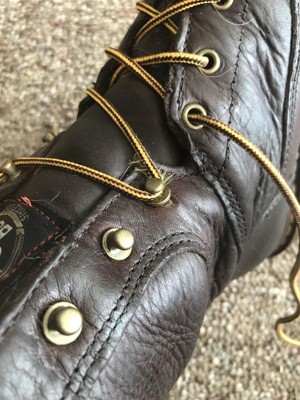 Strong points: grippy & durable soles, solid waterproofing, leather quality & appearance. Weak points: stitching, narrow toe box, awkward tongue. I bought a pair of these for conservation and trail work and they've seen extremely heavy use for a year now (rain, mud, rocks, 12 mi/day, 10+ hr/day). I've given them a good bit of love (cleaning & conditioning w/saddle soap & neatsfoot oil, waxing, re-stitching) and they've lasted longer than many of my coworkers', but they're coming apart in multiple places and I've realized they don't actually fit my feet properly, so I'm ready to retire them. Here are my observations! Stitching: the stitching on one heel panel was the first thing to fail, pulling apart after about six months: I've had to repair it twice since then. Some of the stitching around the outer side of the heel and balls of the feet started coming loose after ten. I repaired the former and haven't had further issues with it yet, but I can't fix the latter and it'll eventually be a critical issue if I keep wearing these. Leather: very durable and handsome, still cleans up quite nicely. These boots have been beaten with far more than their fair share of rocks but aren't even close to wearing through anywhere. Soles: great soles, very grippy if a tad flat for my liking. I've seen countless soles come off in my line of work (some of my own included), but these are still securely attached. Laces: I replaced the laces at around seven months as they were getting concerningly worn. They're a tad slippery, but no more than average for round laces. The hooks and eyelets have proved sturdy. Waterproofing: the waterproofing was admirable while it lasted, holding up against two weeks of work largely in ankle-deep puddles and clay slop. Leaking started around six months (failure wasn't due to the undone heel- the waterproofing on that boot actually lasted slightly longer), but I waxed them and haven't noticed any leakage since. Steel toe: does the job (I need to stop getting steel toes or I'm going to get in the habit of resting massive rocks on them!), but I found the toe box cramped, and due to the steel there isn't any stretch as you're breaking in the boots. This is probably just be a me problem, as it turns out I actually need 2XWs, but I regularly got raw patches on the sides and tops of my toes and felt like my feet were being deformed. I was a tad worried about the steel making these boots awkwardly heavy, but the weight honestly hasn't been an issue, though it's still a pleasant surprise switching to a pair of lighter shoes every now and then! Comfort: as mentioned in other reviews, the tongues fit awkwardly against the shins and need careful adjustment during breaking in, but they ended up sitting okay for me and didn't cause any issues in the long run. There is some rub just above the heel: during late summer when my feet were sweating like nobody's business in the hundred-and-something degrees F my Achilles tendons looked like raw bacon, but this wasn't an issue when things were dry. My main comfort complaint is the toe box, but I've already gone over that. Overall, they're a good budget boot. I've gotten very fond of mine, but I wouldn't buy another pair as I need something wider and sturdier for the long haul.