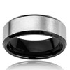 Wear this stylish ring with any style. With a simple design the piece will become your favorite accessory to wear all the time. Crafted for lasting strength and style, this 8 millimeter stainless steel band features a sleek brushed and polished finish. The edges of the rings have simple yet subtle grooves. The width of the band is 8 millimeters and the thickness is 2 millimeters. The black plated design enhances the silver plated center. Its durable material resists scratches and maintains its shine, making it perfect for everyday wear. Designed to symbolize your commitment, this ring combines modern elegance with unmatched resilience. This sleek two-tone titanium men's ring features a brushed silver channel over highly polished black plating. Whether as a modern wedding band or accessory it is sure to complement any style.