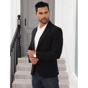 - Upgrade your wardrobe with this men's blazer, featuring a notched lapel for a touch of classic sophistication. The open front button closure creates a sleek, modern appearance.