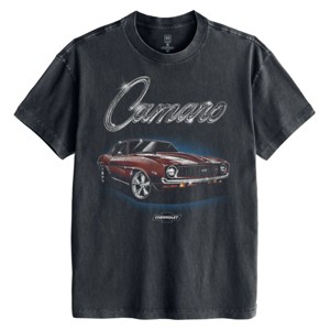 Show your love for American muscle with the Men's Camaro Graphic T-Shirt in Black. Designed with a classic fit for everyday comfort, this tee features bold Camaro artwork that celebrates the legacy of a true automotive icon. Crafted from midweight knit fabric, it offers a soft feel and reliable durability. The crewneck, short sleeves and below-waist length make it perfect for pairing with jeans, joggers or layered under your favorite jacket for effortless style.