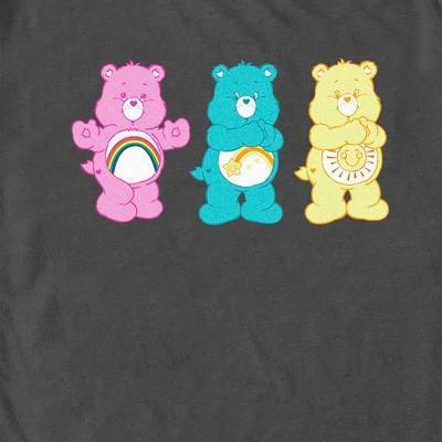 Welcome to the wonderful and adorable world of Care Bears! From cuddly stuffed bears to tv shows and movies, the Care Bears have it all! Grab yourself an officially licensed Care Bears design for the whole family today and spread a little joy! This Men's Bears Trio Graphic T-Shirt features an adorable lineup of your favorite colorful adorable trio: Cheer Bear, Wish Bear, and Funshine Bear printed across the front.