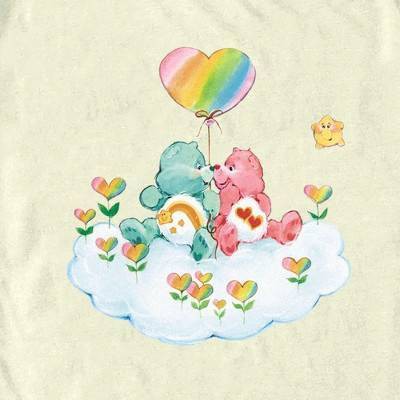 Welcome to the wonderful and adorable world of Care Bears! From cuddly stuffed bears to tv shows and movies, the Care Bears have it all! Grab yourself an officially licensed Care Bears design for the whole family today and spread a little joy! This Men's Cute Graphic T-Shirt features an adorable graphic of the lovely Wish Bear and Love-a-Lot gently touching each other's nose while holding a heart-shaped balloon and sitting on a cloud surrounded by colorful hearts.