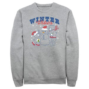 • Strut your stuff with this stylish new Christmas men's crewneck sweatshirt that is perfect for the holidays! Featuring Cheer Bear and Christmas Wishes Bear building a snowman and the phrase: "Winter vibes" printed in distressed letters across the front.