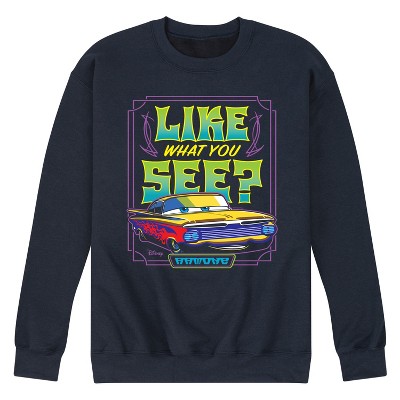 Disney Cars - Radiator Springs Ramone's House of Body Art Rt 66 - Men's Crew Neck Fleece Pullover - Hit the road in style with Cars graphic apparel, featuring bold and colorful designs of Lightning McQueen, Mater, and the entire racing crew. Each piece captures the high-speed excitement, friendship, and charm of Radiator Springs, bringing Pixar’s beloved automotive world to life. Perfect for fans of all ages who love adventure, racing, and heartwarming moments from the Cars universe, this collection adds fun and energy to any wardrobe.