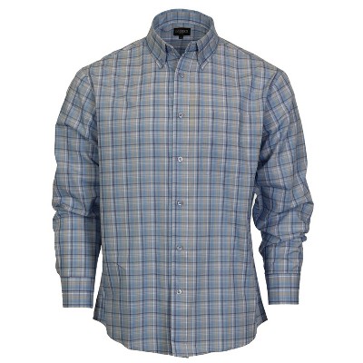 Men's Classic Retro Checkeblue Shirt with Contrast Collar Full Button Front Chest Pocket blue L