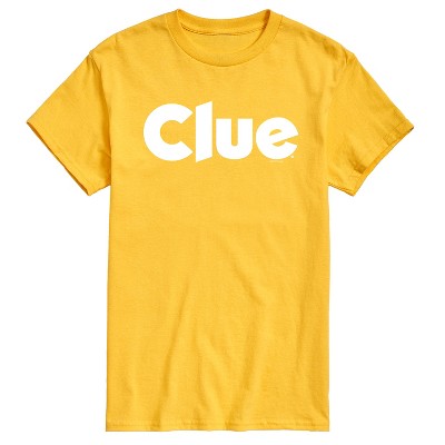 Clue - Clue Logo - Men's Short Sleeve Graphic T-Shirt - Dress to impress—with a little mystery—with Clue graphic apparel, inspired by the classic board game and its unforgettable cast of characters. Featuring bold designs of Miss Scarlet, Colonel Mustard, Professor Plum, and more, each piece brings the suspense, humor, and vintage charm of a good whodunit to your wardrobe. Whether you're a lifelong fan of the game or love a stylish nod to mystery, this collection is perfect for those who appreciate clever clues, dramatic reveals, and timeless intrigue.