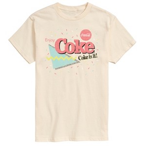 Coca-Cola - 90's Retro Style - Coke Is It - Men's Short Sleeve Graphic T-Shirt - Celebrate the timeless classic with Coca-Cola graphic apparel, a collection that blends iconic branding with nostalgic charm. Featuring the world-famous Coca-Cola logo, vintage-inspired artwork, and bold, refreshing designs, each piece captures the effervescent spirit of the beloved beverage. Whether you're a longtime fan or just love classic Americana, this apparel brings the joy, history, and unmistakable fizz of Coca-Cola to your everyday style. Perfect for casual wear, collectors, or anyone who appreciates the enduring appeal of the world’s favorite soda.