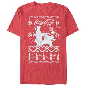 Men's Coca Cola Ugly Christmas Polar Bear  T-Shirt - Red Heather - X Large - 1 of 4