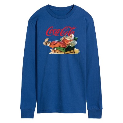 Men's Coca-Cola Vintage Santa with Dog Long Sleeve Graphic T-Shirt - Royal Blue - Medium
