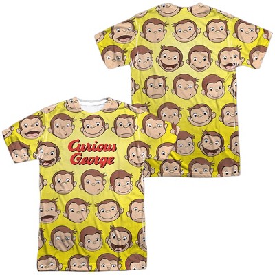 Men's Curious George Hands In The Air Short Sleeve Costume T-Shirt, White Front, Black Back, Small