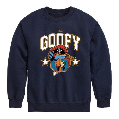 Men's Disney Goofy Stickers Graphic Fleece Sweatshirt - Navy - Medium