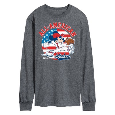 Men's Disney Mickey Americana Baseball Long Sleeve Graphic T-Shirt - Heather Charcoal - 2 X-Large