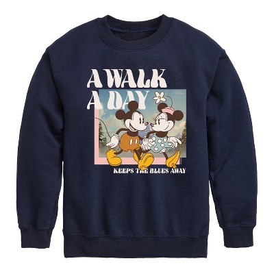 Men's - Disney - Mickey and Minnie Mouse A Walk A Day Keeps The Blues Away Graphic Fleece Sweatshirt