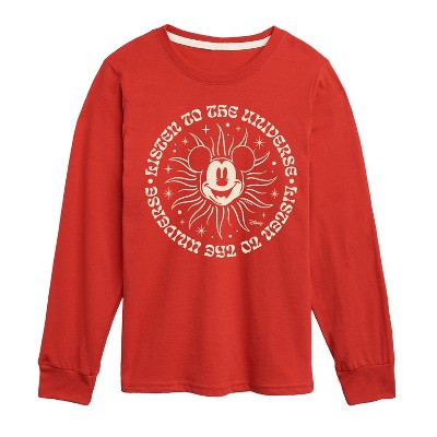 Men's Disney Mickey Listen To The Universe Long Sleeve Graphic T-Shirt - Red - Large