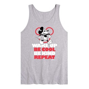 Disney - Mickey Mouse - Wake Up, Be Cool, Be Kind, Repeat - Men's Jersey Tank Top - Add a touch of magic to your wardrobe with this graphic apparel featuring iconic Disney designs. Showcasing beloved characters and classic imagery, each piece combines nostalgic charm with modern style—perfect for Disney fans of all ages. Whether you're headed to the parks or just adding whimsy to your everyday look, these graphics bring the magic to life.
