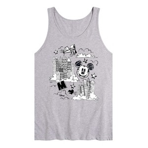 Disney - Mickey Mouse - Skyscraper, Airplanes, & Clouds Sketch - Men's Jersey Tank Top - Add a touch of magic to your wardrobe with this graphic apparel featuring iconic Disney designs. Showcasing beloved characters and classic imagery, each piece combines nostalgic charm with modern style—perfect for Disney fans of all ages. Whether you're headed to the parks or just adding whimsy to your everyday look, these graphics bring the magic to life.