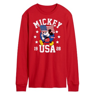 Disney - Mickey Waving Flag USA - Men's Long Sleeve T-Shirt - Celebrate the essence of Disney's Disney with officially licensed apparel featuring unique designs crafted exclusively by Hybrid Apparel. Each piece brings beloved characters, iconic imagery, and memorable moments to life, offering Disney fans a one-of-a-kind way to showcase their passion.