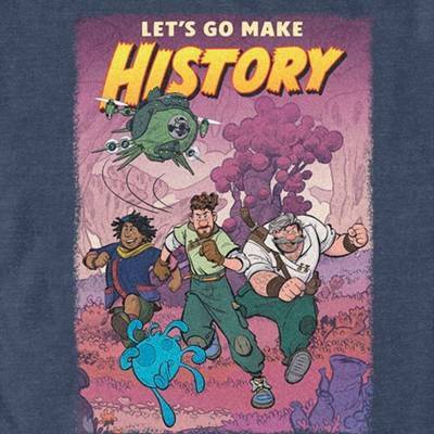 • Strut your stuff with this stylish new Men's T-Shirt! Featuring a drawn-style comic book portrait of the Clade family with the phrase from the film "Let's go make history!" printed above!