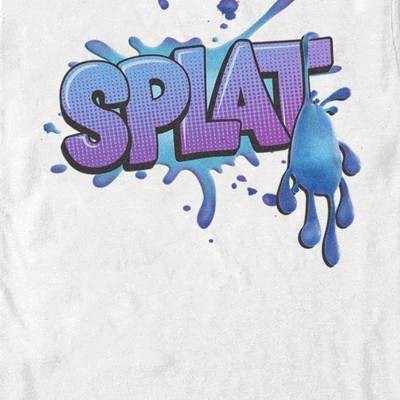 • Strut your stuff with this stylish new Men's T-Shirt! Featuring the blue blob alien Splat hanging from his name printed across the front with a cool splash background!