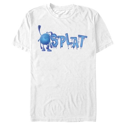 • Strut your stuff with this stylish new Men's T-Shirt! Featuring the blue blob alien Splat hanging from his name printed across the front with a cool splash background!