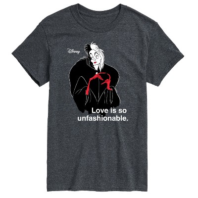Men's Disney Villains Cruella De Vil Love Unfasionable Long Sleeve Graphic T-Shirt - Heather Charcoal - Medium