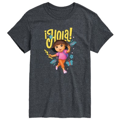 Dora The Explorer - Hola - Men's Short Sleeve Graphic T-Shirt - Bring adventure to your wardrobe with graphic apparel inspired by Dora the Explorer! Featuring bold colors, playful designs, and beloved characters like Dora, Boots, and Backpack, each piece captures the spirit of exploration and curiosity. Perfect for fans of all ages, this collection combines nostalgic charm with fun, eye-catching style for everyday adventures.