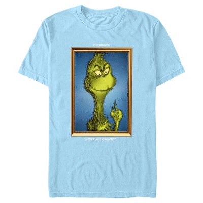 • Strut your stuff with this stylish new men's t-shirt that is perfect for every occasion! Featuring a portrait of Grinch smiling across the front with his name above him in an airbrushed style.