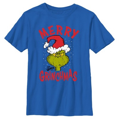 • If you're as cuddly as a cactus or as charming as an eel, then you'll love sporting this Grinch-inspired t-shirt! Featuring the Grinch wearing a Santa hat framed by snowflakes and the funny phrase "Merry Grinchmas" around him.