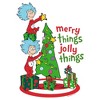 - Strut your stuff with this stylish new men's t-shirt that is perfect for the holidays! Featuring Thing 1 and Thing 2 decorating a Christmas tree and the phrase: "Merry Things Jolly Things" written in festive red and green lettering.