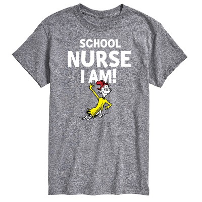 Dr. Seuss - School Nurse I Am Sam I Am - Men's Long Sleeve T-Shirt - Our collection of graphic apparel featuring officially licensed Dr. Seuss characters brings the whimsy and wonder of Seussville straight into your wardrobe. From the mischievous Cat in the Hat to the stinky Grinch, each design showcases iconic characters and scenes from Dr. Seuss's timeless stories.