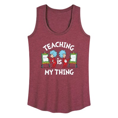 Dr. Seuss - Teaching Is My Thing - Men's Short Sleeve Graphic T-Shirt - Our collection of graphic apparel featuring officially licensed Dr. Seuss characters brings the whimsy and wonder of Seussville straight into your wardrobe. From the mischievous Cat in the Hat to the stinky Grinch, each design showcases iconic characters and scenes from Dr. Seuss's timeless stories.