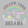 • Strut your stuff with this stylish new men's t-shirt that is perfect for every occasion! Featuring a happy Dumbo soaring into the air surrounded by a colorful rainbow and the inspiring phrase: "Follow Your Dreams."