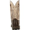Introducting the men's 11 inch Western Ventilated Composite Toe Dark Brown/Fog Durango Maverick XP. This style features full-grain leather, Durango X-Treme A.C. ventilated shaft, air mesh lining and the Durango X-Pand System which is a hidden gore expansion on the inside medial seam for a universal fit and easy on/off. It also has the Durango X-Treme Comfort Footbed with memory foam for all day comfort and support and a fiberglass shank for lightweight stability.This boot has a composite safety toe, internal metatarsal guard and is electrical hazard resisting. The midsole is dual-density with a firmer shock absorbing heel for added stability and a soft shock absorbing forepart for ultimate flexibility and comfort. The rolled shank area and anti-torsion rigid external shank provides added lateral stability and the outsole is multi-durometer rubber with high abrasion outer lugs for high impact durability and softer durometer mid lugs for added flexibility and increased heat, slip and oil resistance. It has a single row sole stitch around the square toe for added durability and a 1 1/2 inch rocker heel. Break Ground in the men's 11 inch Western Ventilated Composite Toe Dark Brown/Fog Durango Maverick XP. Get a pair today!