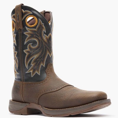 Pull on lightweight comfort in the men's Tobacco Leaf/Black Durango Rebel collection. This style features full-grain leather with a saddle vamp and a soft mesh lining. It also includes the Durango X-Pand System for easy on/off, the Durango Advanced Comfort System Footbed with InsulKul for temperature regulation and a cushion flex insole. The shank is tempered steel and includes a rolled shank area. This style is finished off with an EVA midsole, slip, oil and abrasion-resisting rubber outsole, double row sole stitch, 1 1/2 Rocker heel and square toe.