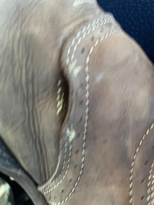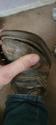 Less than two months old and they are already falling apart. Marketed and sold as work boots….Definitely not work boots!!