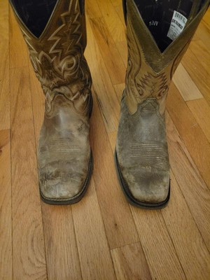 This boot is part of the Durango Ultra-Lite collection. It features a vintage brown full-grain leather foot and pull straps and a synthetic tan colored upper.This boot features the Ultra-Lite comfort system. This system contains a removable cushion footbed, a fiberglass shank for strong and sturdy footing, an EVA forefront which allows for bend and flexibility, deep flex grooves that allow for maximum bend and lastly, rubber pods which add lightweight abrasion resistance to help you defy gravity.These square toe boots are 11 inches tall, have a 1 1/2 rocker heel and double row welt stitch for extra durability.You will not be disappointed in these Durango Ultra-Lite cowboy boots as they're 25% lighter than the average western boot. Order a pair today!
