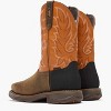 Pull on comfort, support and durability in the men's 11-inch Coffee/Monarch Orange Durango Workin' Rebel collection. This style features full-grain leather upper with abrasion-resisting rubber heel counter and a waterproof membrane bootie construction. Inside the boot is a soft mesh lining, Durango X-Pand System for easy on/off, Durango Advanced Comfort System Footbed with InsulKul to temperature regulation and a cushion flex insole. This style also features a welt construction, fiberglass shank, rolled shank area and an EVA midsole. This style is finished off with a slip, oil and abrasion-resisting rubber outsole, double row welt stitch, 1 1/2 Rocker heel and a square toe.