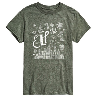 Men's Elf Logo And Santa Short Sleeve Graphic T-Shirt - Heather Military Green - Small