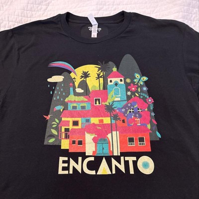 Join the Madrigal family for some magical and musical fun in the mountains of Colombia in Disney's new hit film Encanto! This fun officially licensed Men's Casa Magic Tee features an adorable, colorful graphic of the magical house the Madrigals live in surrounded by plants and animals with the "Encanto" title underneath.