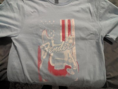 • Be the rockstar you know you are with this Fender tee that shows off a distressed patriotic design down the front.