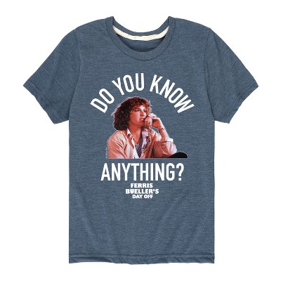 Ferris Bueller's Day Off - Do You Know Anything - Men's Short Sleeve Graphic T-Shirt - Embrace the day off with Ferris Bueller’s Day Off graphic apparel. Featuring Ferris, Cameron, and Sloane, these designs capture the carefree spirit and rebellious moments of this iconic teen classic.