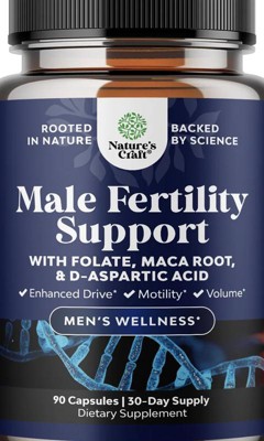 Men's Fertility Capsules, CoQ10 Maca Root Methyl Folate & D-Aspartic Acid for Enhanced Count Motility & Fertility Support, Nature's Craft, 180 ct