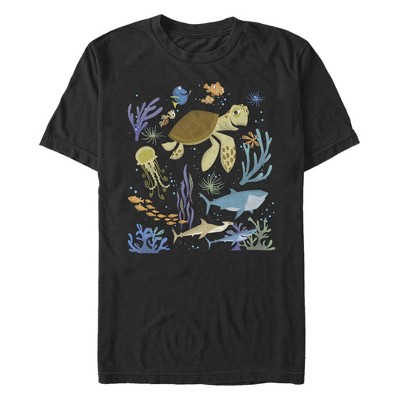 Nemo and his dad Marlin are proof that you don't need to be big to be brave! Set out on the open sea with Dory and Marlin and this Fifth Sun Pixar Finding Nemo Men's T-Shirt! Get ready to explore the Great Barrier Reef, come face to face with sharks, and find your very own "Squishy" with one of these funny Finding Nemo designs!